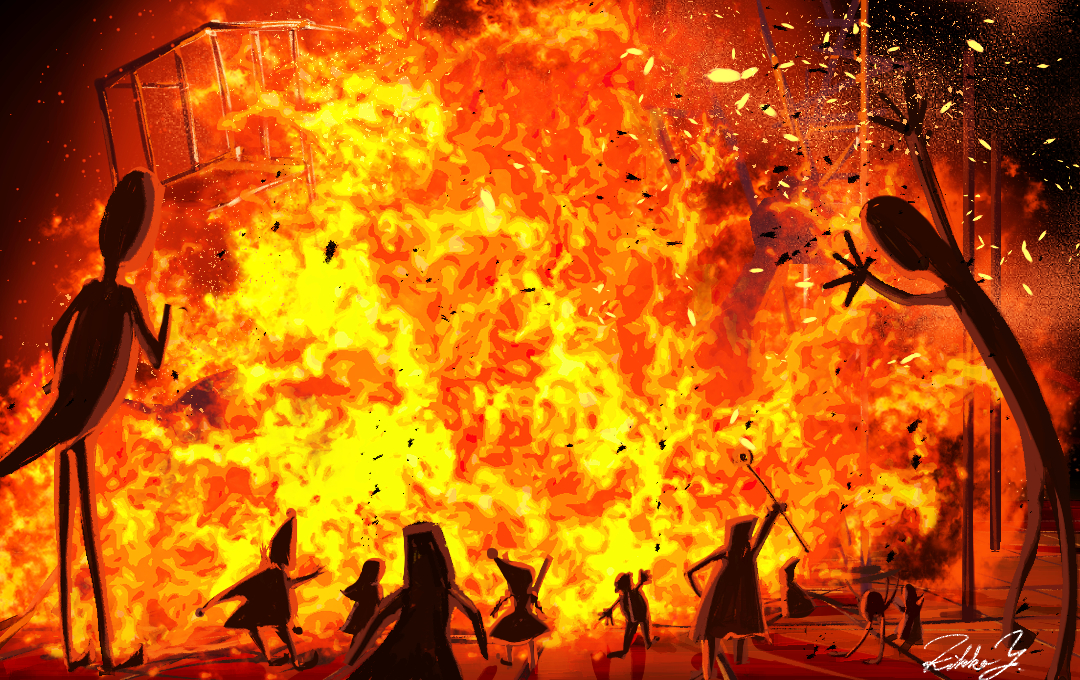 ゲーム制作サークルAmazingPop様の新トレーディングカードゲーム 「Play of Universe」 のカードイラスト、【炎舞の祭典】を、もう一枚の【海底都市コンコース】 に並び、担当させて頂きました!